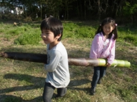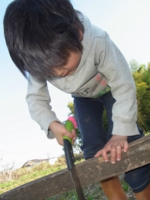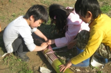 例)ビオトープ作り、川で魚取り、ロケットコンロづくり、アウトドアクッキング(焼いも、おやき、鶏の丸焼きなど)、竹テントづくり、ナイフの使い方、ノコギリの使い方、森のあそび場作り(縄はしご、ブランコ、ハンモック・・)、竹の水鉄砲、畑で野菜作り、蝶を呼ぶ花壇作り、バードテーブル・巣箱作り、などなど・・・自然の楽しみ方はたくさんあります!