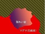 ② 約6000万年前、花崗岩質の別のマグマが、斑れい岩を囲む。